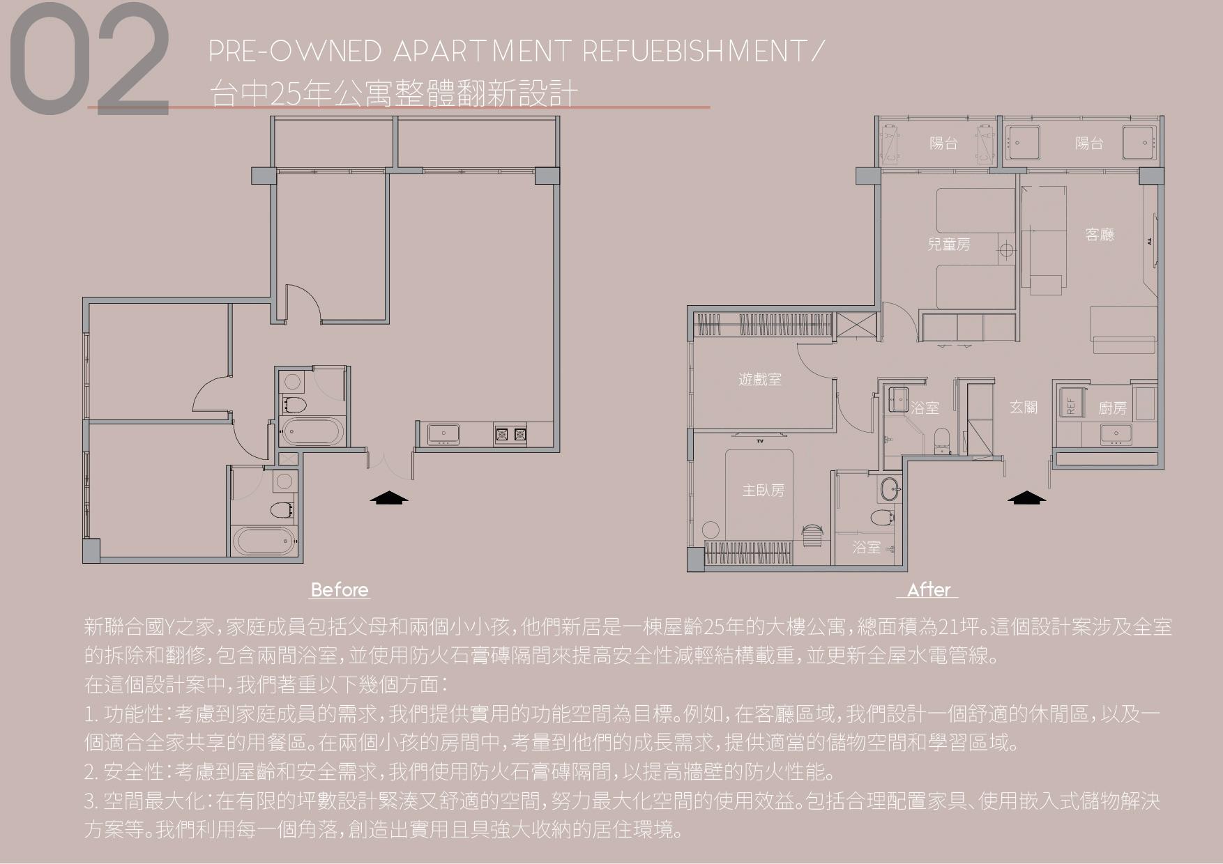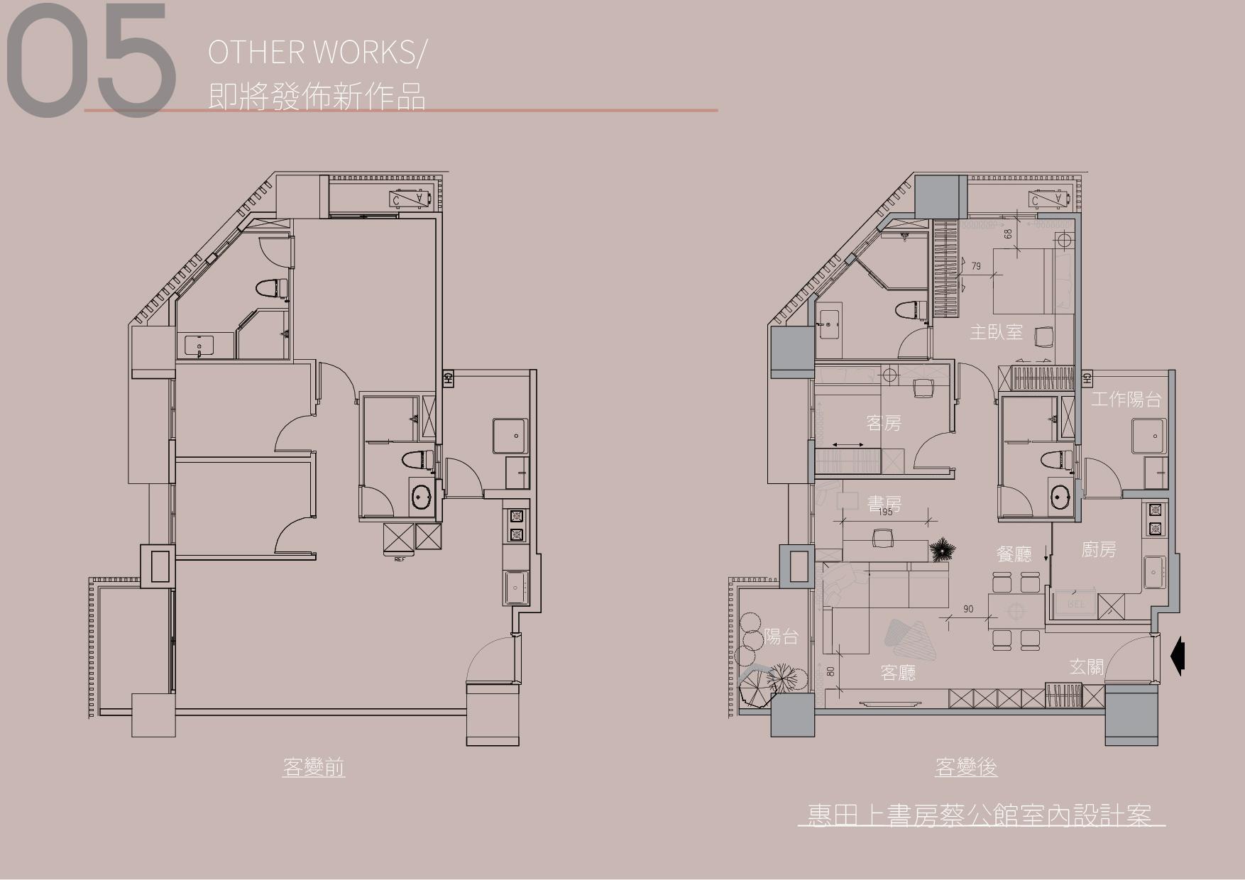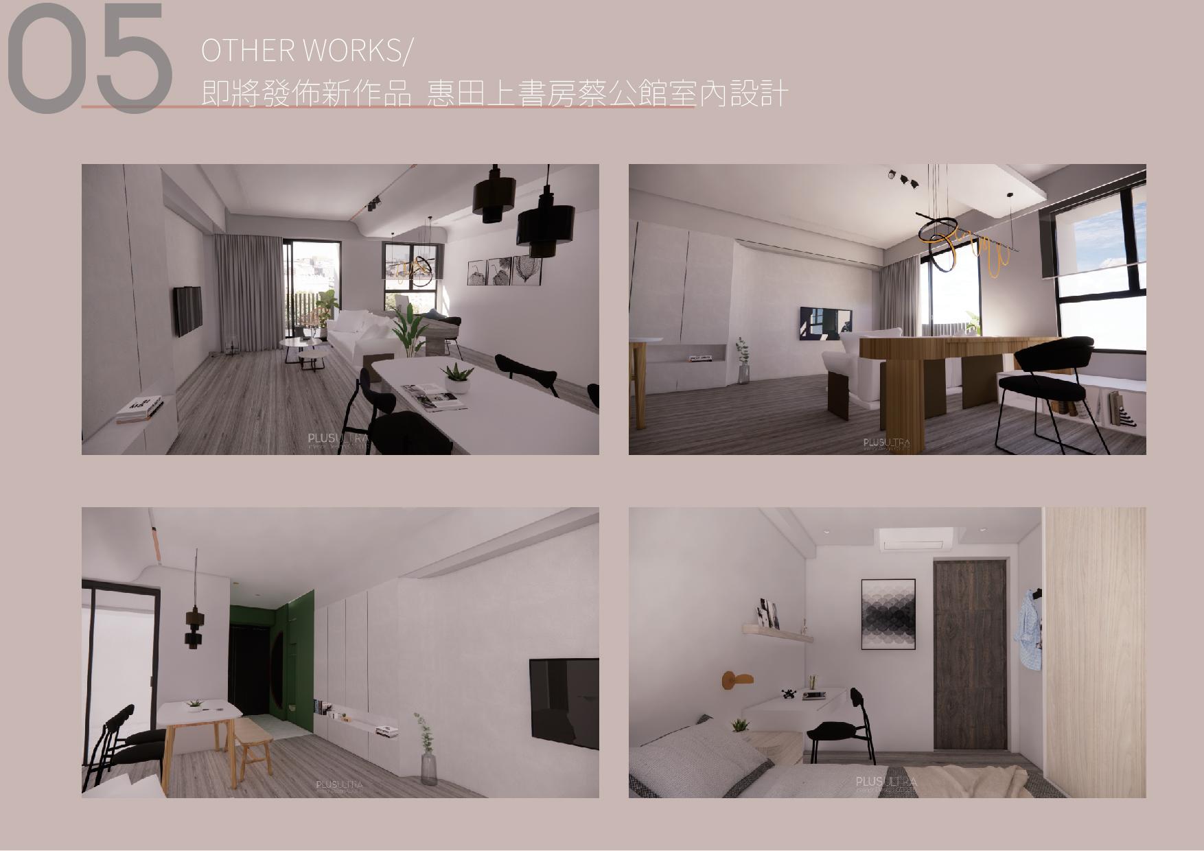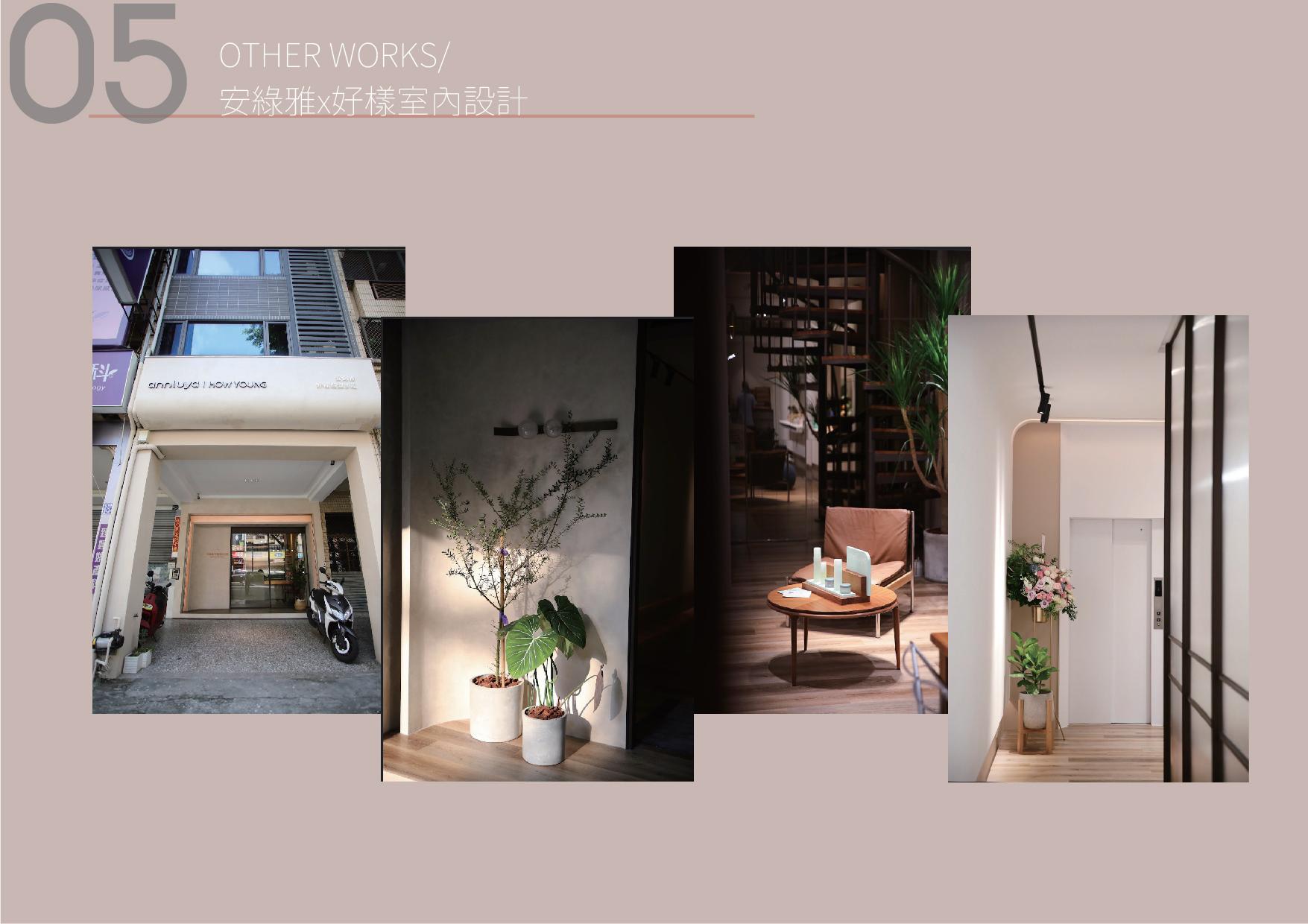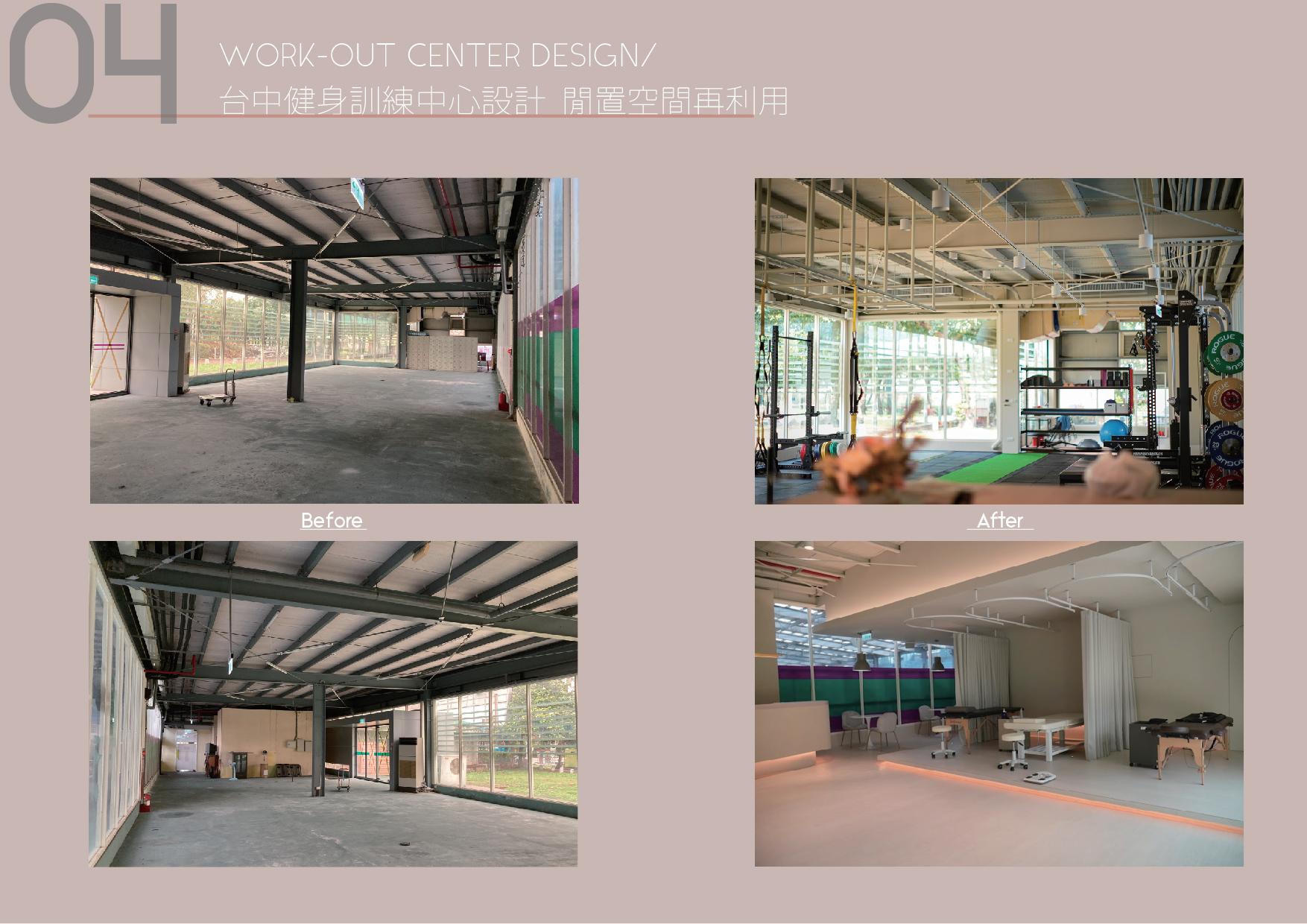 project FIVE STORY HOUSE DESIGN/ 彰化透天厝室內設計 PRE-OWNED APARTMENT REFUEBISHMENT/ 台中25年公寓整體翻新設計 NEW APARTMENT DESIGN/ 桃園新成屋客變設計 WORK-OUT CENTER DESIGN/ 台中健身訓練中心設計 閒置空間再利用 FUTURE WORKS 01 02 03 04 05