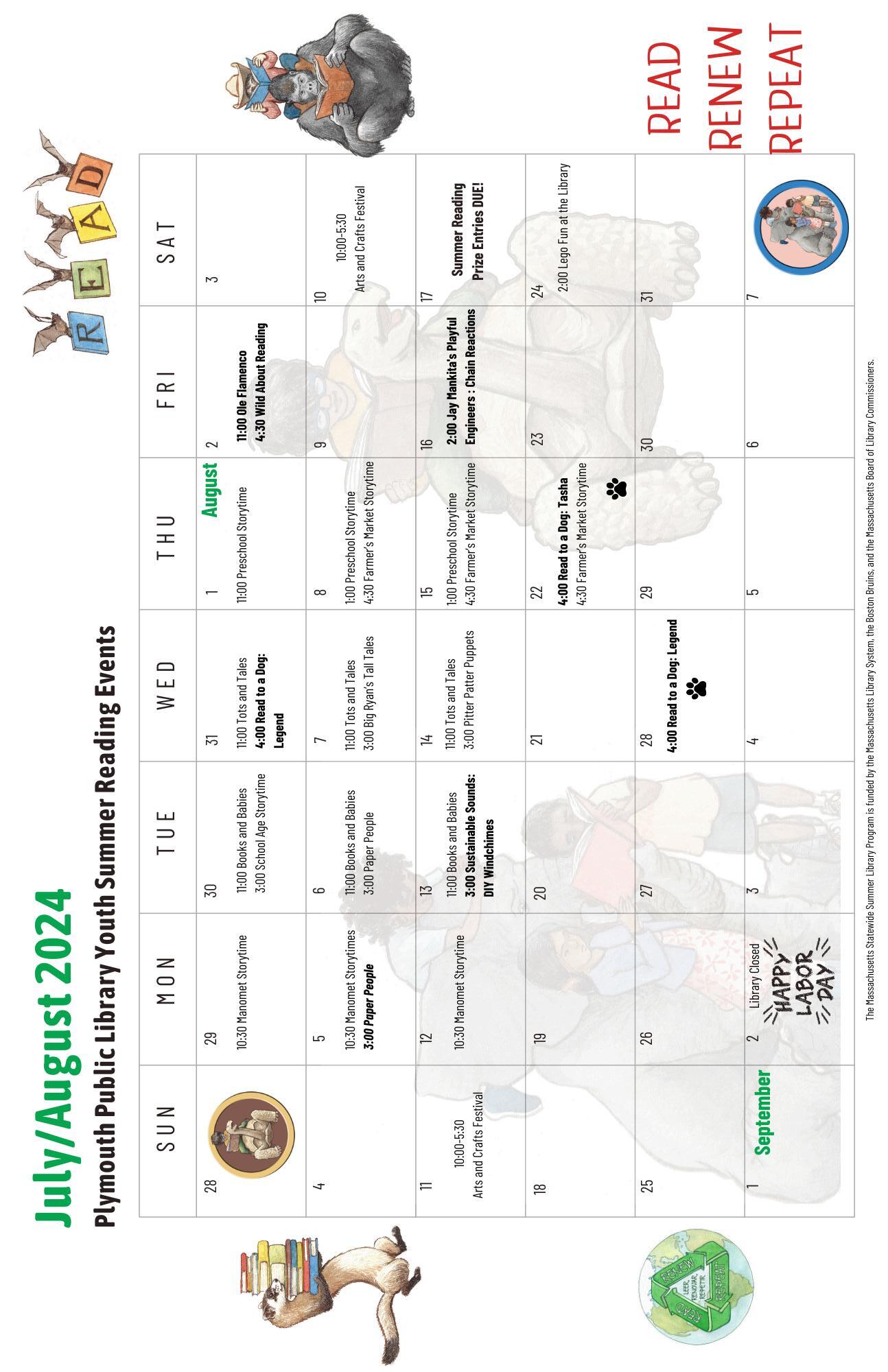 The Plymouth Public Library Summer Reading Program will offer weekly and monthly programs, activities, and performances for patrons of all ages! Don't miss out!! View our Summer Library Program Calendar for a list of events.