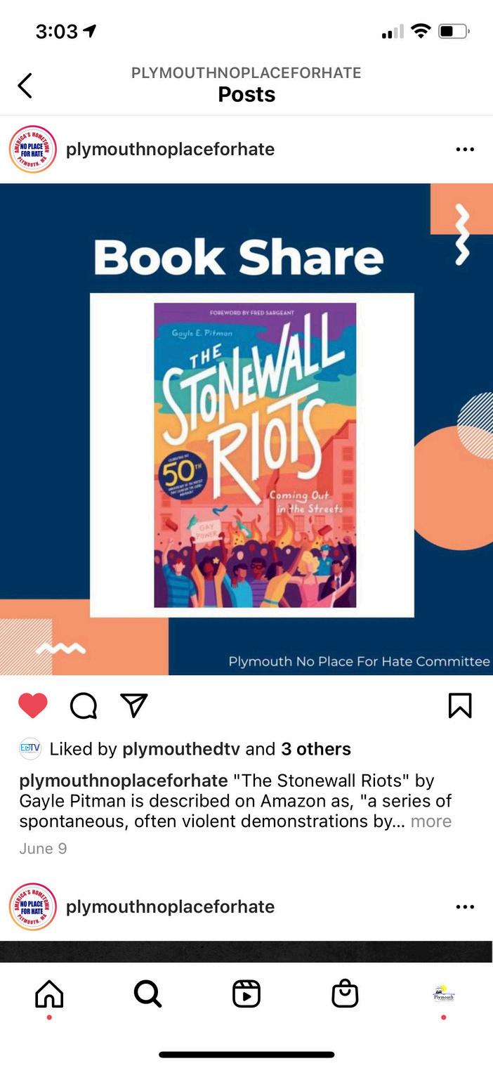 Purposefully, we strive to promote and share learning opportunities by acknowledging and understanding the impact of history on social interactions. Follow Plymouth No Place for Hate on Facebook & Instagram for special highlights, book shares, and to learn about important events happening around Plymouth! plymouthnoplaceforhate.org