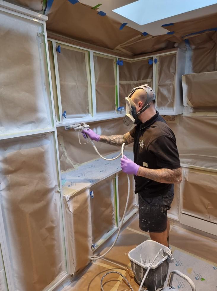 With over 15 years of spray painting experience and knowledge to transform your homes across Devon and Cornwall. Using specialist, extremely-durable paint from Italy, we can match any colour you like, including Farrow & Ball, Little Greene, Dulux, RAL etc. The spraying process produces a superior finish over brushing and rolling and gives a flawless ‘factory finish’