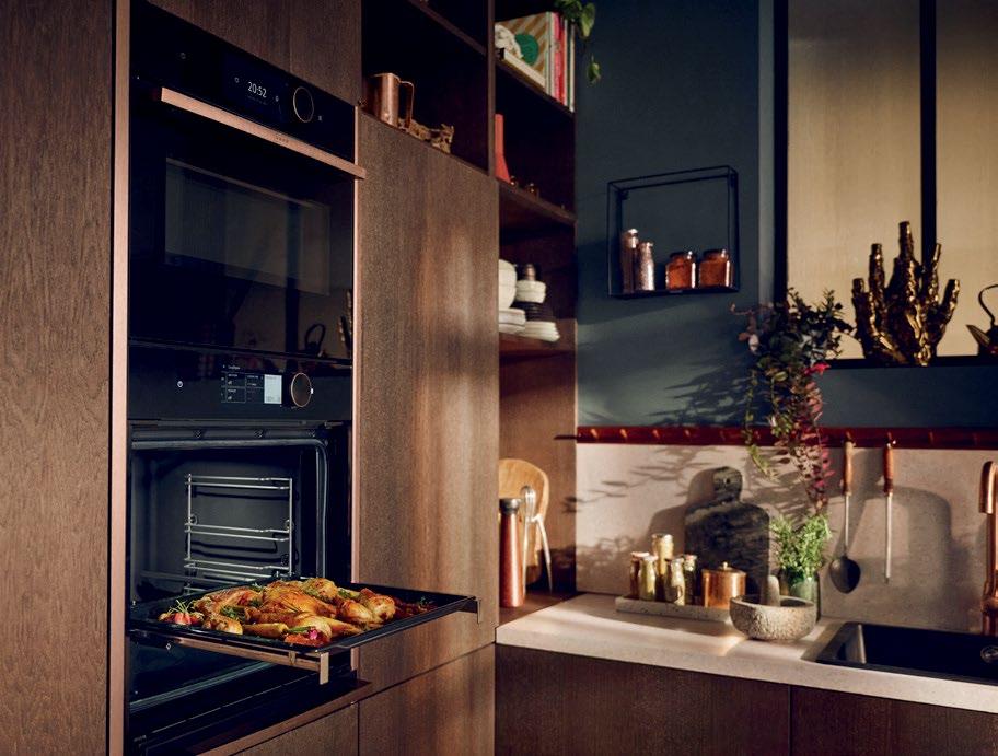 The working appliances in the KF Kitchens studio also display the ergonomic slide and hide doors, pyrolytic