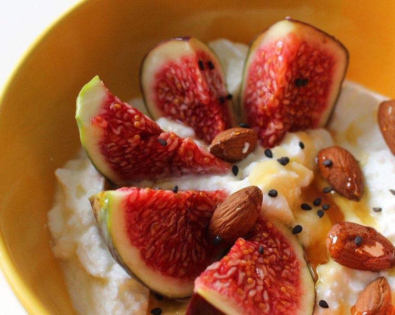 Cut the figs in half. Spoon over the yogurt, then drizzle with honey. Sprinkle with cinnamon and a few flaked toasted almonds.