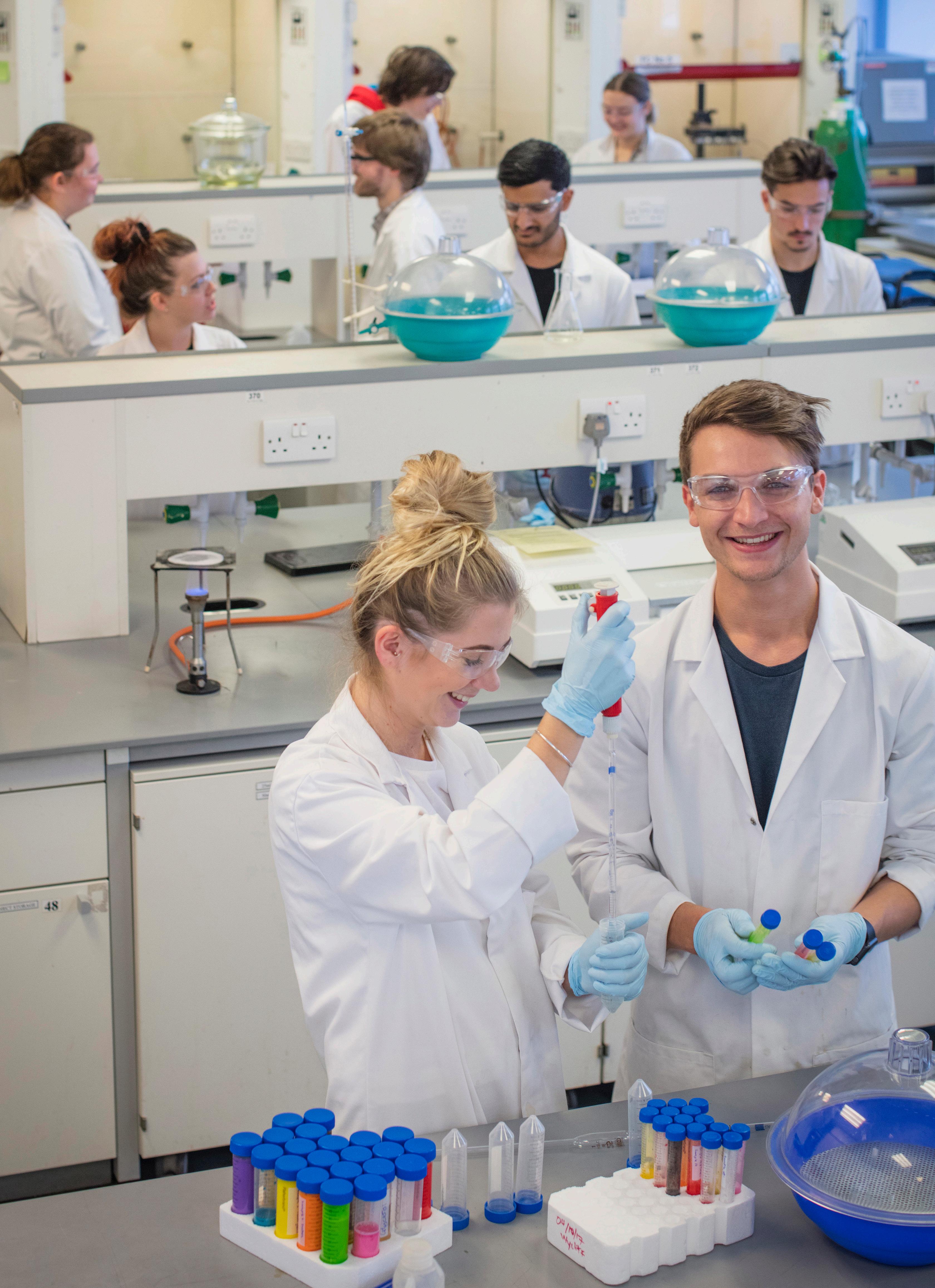 If laboratory sessions are something you look forward to, then we have plenty of them. We truly believe in chemistry as a skill to be practised, not just an academic subject to learn about. Your first lab with us will be in your first week of study and you can expect to be doing chemistry at least once (often more than once) in most teaching weeks.