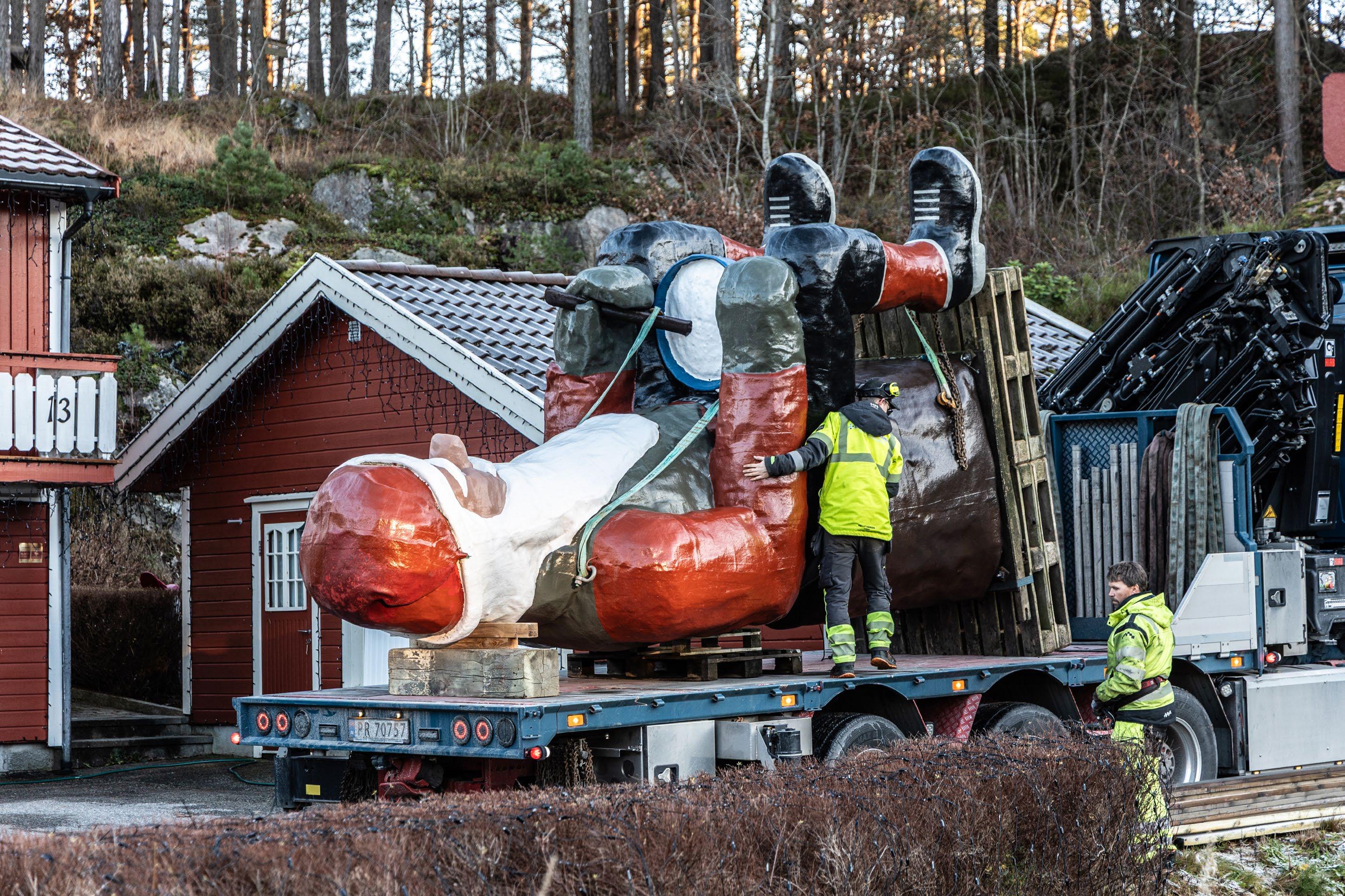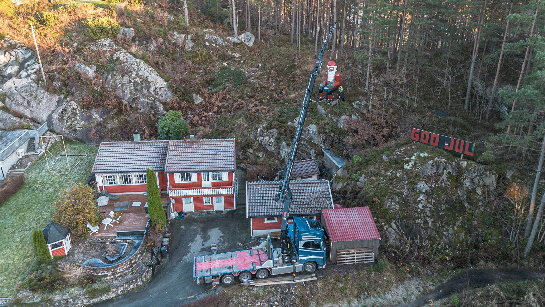 ● Even Eikås maste så lenge på å få kjøpt den fem meter høye nissen at eieren til slutt ga opp. Nå står den og skuer ut over Eiketjønnveien i Søgne.