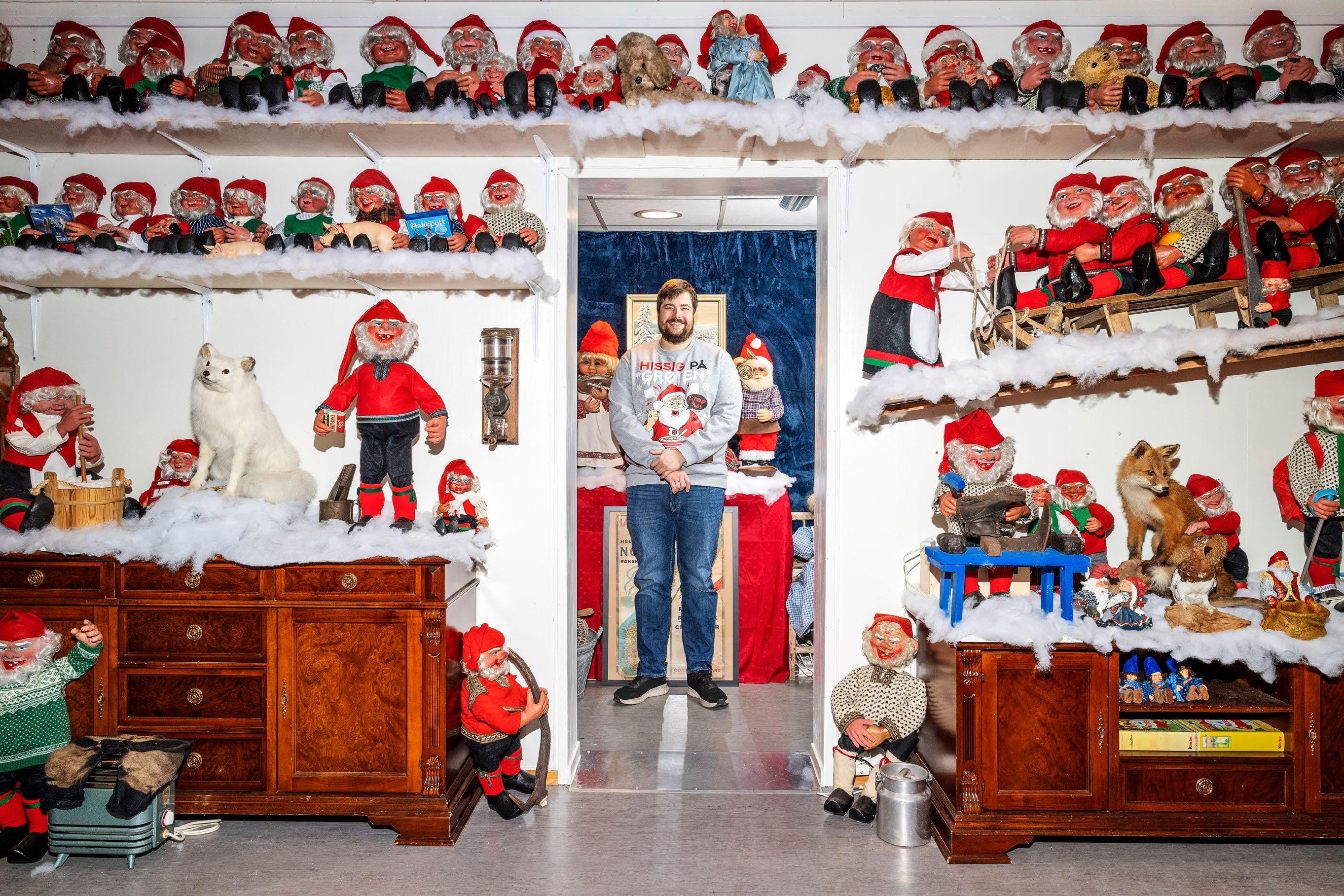 – Jeg begynte å rydde inn nissene i vår. Og ble helt ferdig i går, bortsett fra golvvaskinga. Så det har gått noen timer med arbeid ja. Hver dag, forteller den nisseglade mannen.