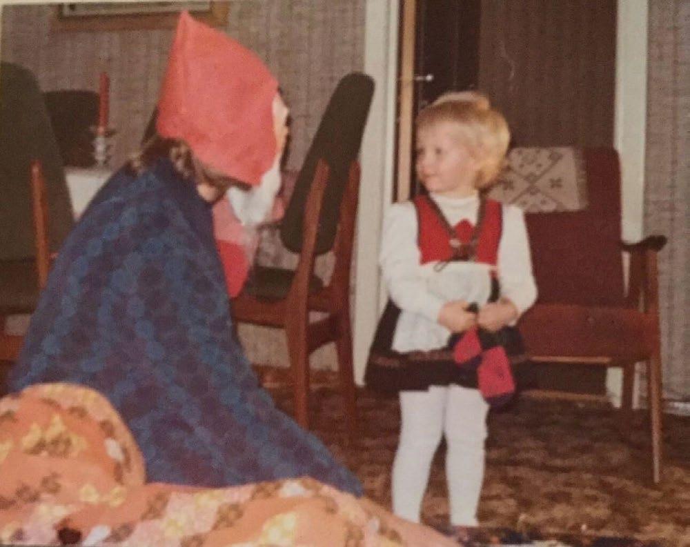 ● Solveig Hasle var utdannet ved Statens Håndtverks- og Kunstindustriskole og hadde mange ideer om klesdesign og norske nasjonaldrakter. Det ble nisser med bunader, med islender og busserull og vams.