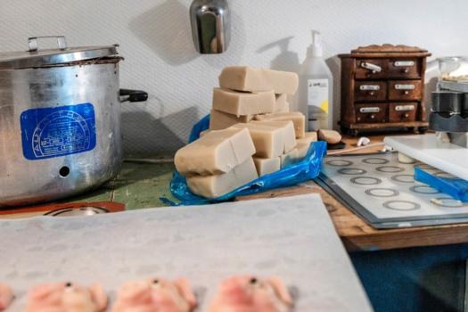 Med heklede gardiner, slitte tregulv, en gammel kjøpmannsdisk og annet, gammelt ærverdig interiør blir man satt over 100 år tilbake i tid. Og midt oppi dette sitter Michael med et stort smil, og presser ut marsipangriser til den store gullmedaljen.