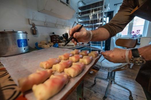 – Dette er bestemors oppskrift fra Telemark. Nå lever både oppskriften og den frittgående marsipangrisen det gode liv i Posebyen, sier Michael Rodenbeck.