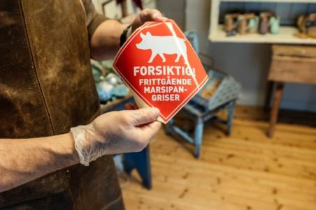 En frittgående marsipangris håndlaget i Posebyen, driver og flesker seg til over hele landet. Til neste år skal det søte grisetrynet erobre utlandet.