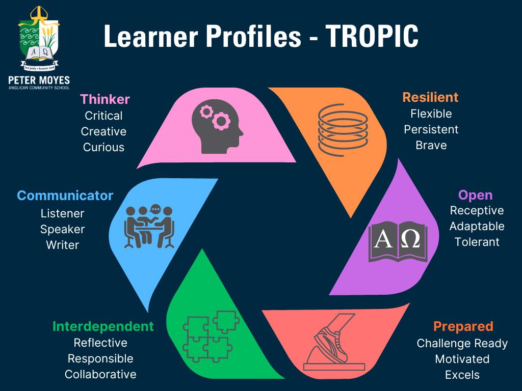 Our Year 2 students presented a fantastic assembly earlier this term, demonstrating and explaining each profile from our TROPIC framework as per the diagram to the right TROPIC is an acronym for all our learner profiles This initiative has been embraced by both students and staff, who are continually reflecting on and refining their teaching practices to benefit our students