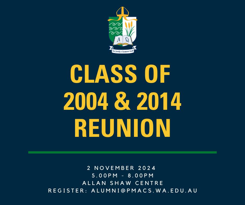 Saturday 2 November: Alumni Class of 2004 & 2014 Reunion Sundowner