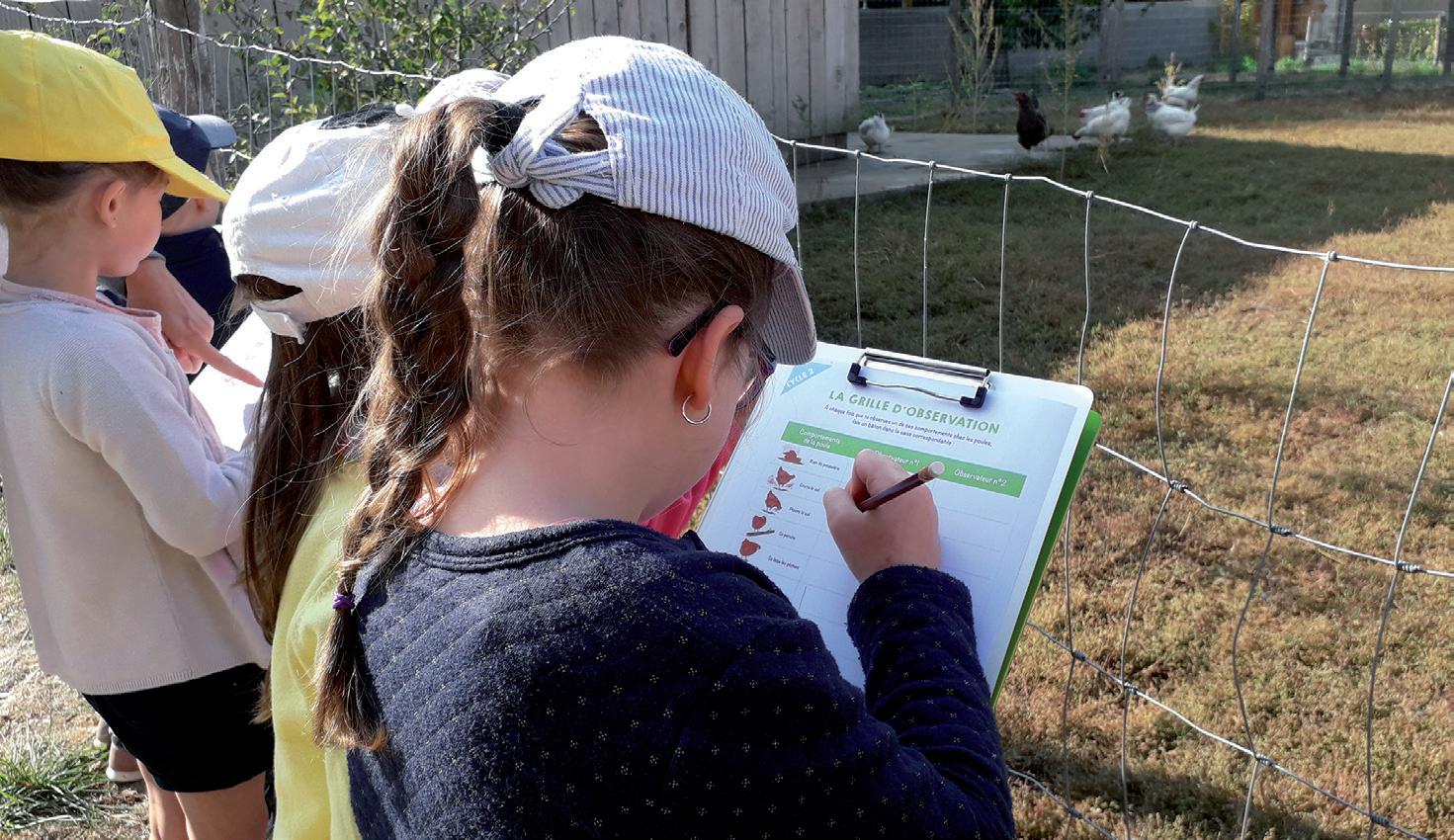 Cet atelier centré sur la démarche scientifique comprend deux temps d’activité en salle, ainsi qu’une mise en pratique en extérieur devant l’enclos des poules.