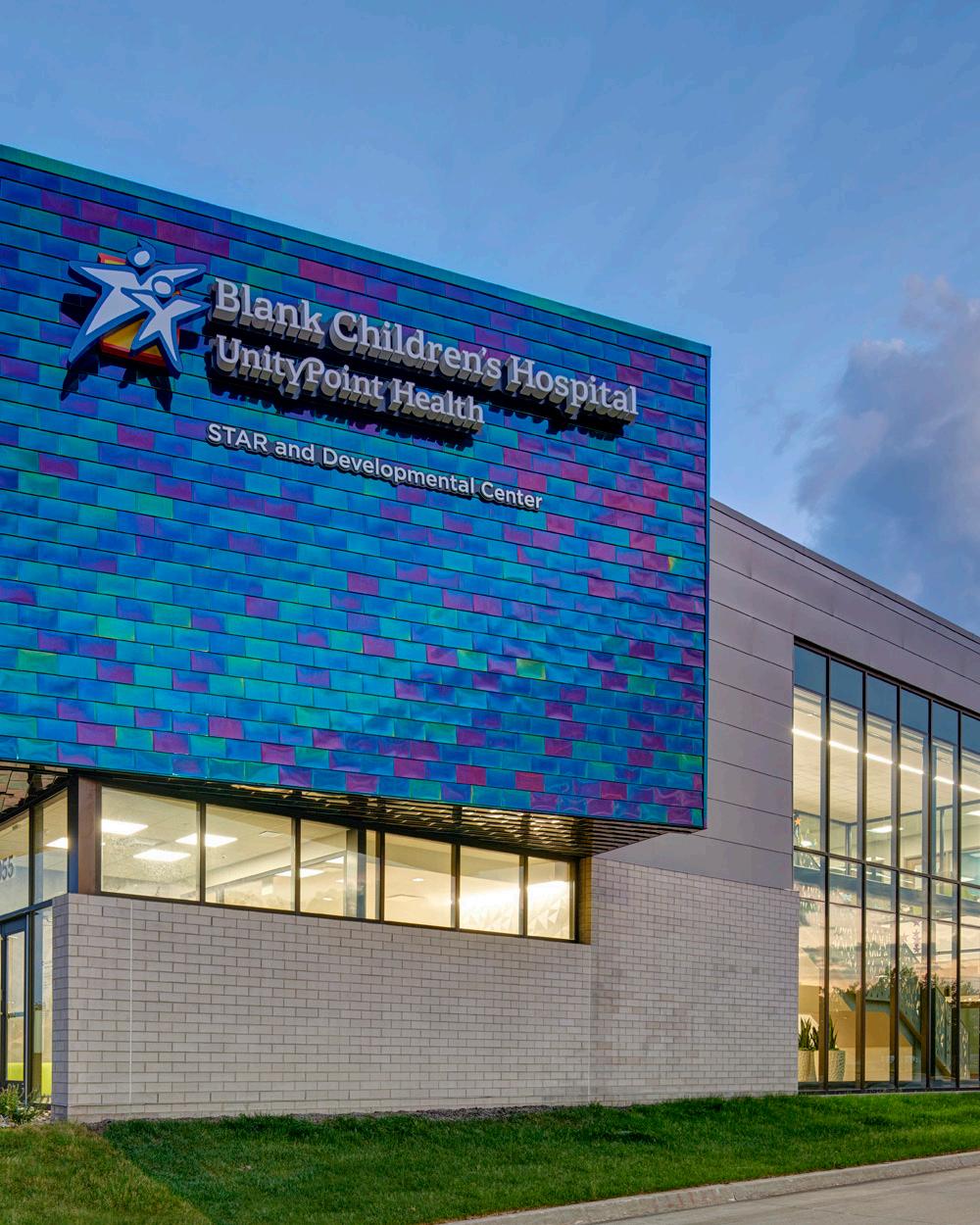 Blank Children’s Hospital recently completed a fundraising campaign to build its first free-standing facility off-campus to accommodate the expansion and relocation of the STAR Center and the Developmental Center. The facility, which is located in West Des Moines, provides the opportunity for expanded access to care for some of the most vulnerable children in our community. The STAR Center cares for children who have been victims of abuse, been exposed to drugs, are in the foster care system, or need extra support for growth and development. The Developmental Center cares for children who have developmental, behavioral, and physical conditions to help provide diagnosis and treatment. Both Centers are committed to helping children thrive and reach their full potential.