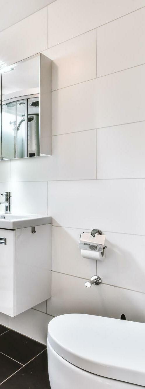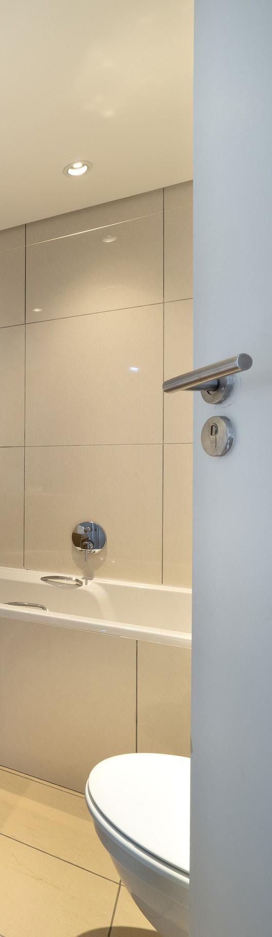 Trong những ngôi nhà nhỏ hoặc căn hộ, phòng tắm và nhà vệ sinh thường nằm cạnh phòng ngủ hoặc phòng khách. Vách ngăn ở đây phải bằng bê tông dày ít nhất 75 mm trát cả hai bên và các thiết bị vệ sinh không được cố định vào đó. Cửa phòng tắm phải càng nặng càng tốt và vừa vặn. Khi ống thoát nước dẫn xuống nhà bếp, nó phải được bao bọc trong một lớp phủ kín khí hợp lý như tấm ván ép hoặc tấm len gỗ được trát. Nếu ống thoát nước được dẫn qua phòng khách (nên tránh nếu có thể), nó nên được đậy kín. Một khuyến nghị về độ trễ và bốc hơi trong các ống thoát nước trong những trường hợp như vậy được đưa ra trong Tài liệu E được phê duyệt nhằm hỗ trợ Quy định xây dựng năm 1991. Quy định bao gồm một số yêu cầu khác liên quan đến việc chống lại tiếng ồn từ các dịch vụ trong các tình huống cụ thể cần được tuân thủ.
