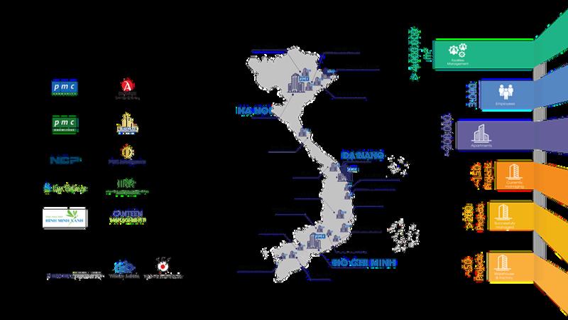 PMC は、ベトナム最⼤の企業の1つである VNPT と⽇本の Biken Techno との協⼒によって設⽴されました。PMCはハノイ、ダナン、ホ チミン 市、クアンニンにオフィスを構え、現在ベトナムで100を超えるプロジェ クトに不動産サービスを提供しています。