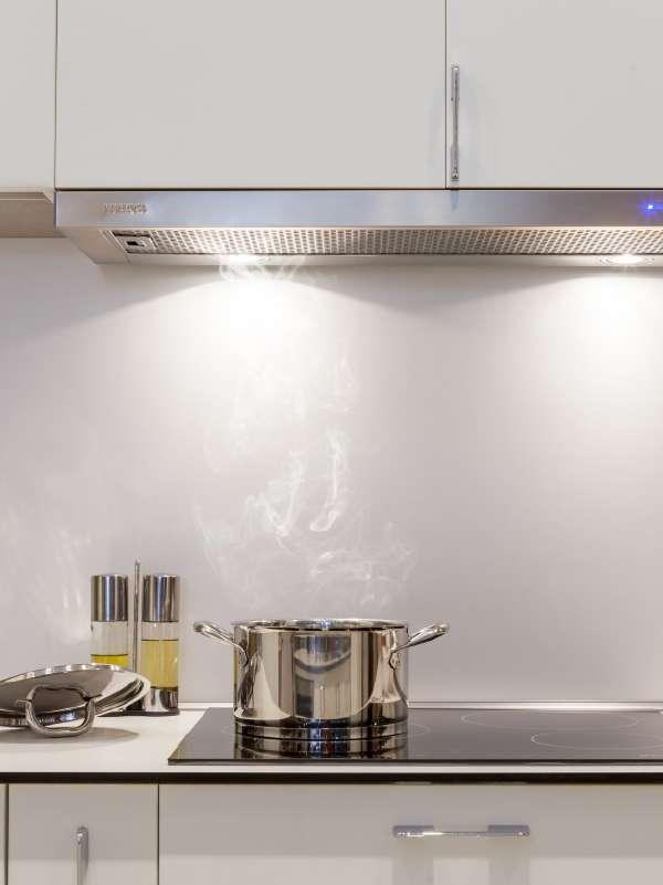 Избегайте контакта с горячим паром — он может повредить дверцы кухонных шкафов.