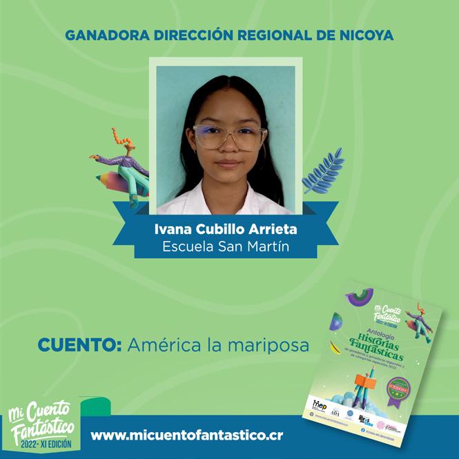 Dentro de los ganadores regionales, se destacaron estudiantes de la Región Cañas, Liberia y Santa Cruz: “El pueblo de los enanos”, de la Región Liberia, es un cuento de la autora Isabella Aguirre Espinoza de la escuela Santa Ana. Por su parte en la Región Cañas,"La