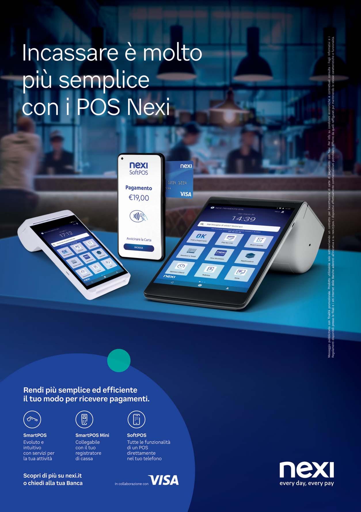 gestione quotidiana, essere in regola con le normative e offrire ai clienti un servizio all’altezza delle aspettative. Le soluzioni di Nexi rappresentano strumenti ideali per le imprese che desiderano crescere, migliorare l'efficienza e offrire un'esperienza cliente moderna e sicura.
