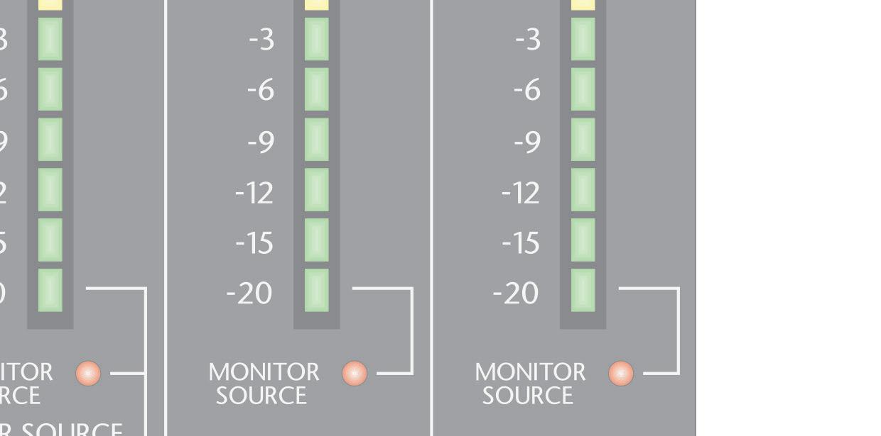 In a multi-track studio environment where the Channel Direct Output is fed to the recording device and the output of this device is connected to the MONITOR I/P, it is possible to see on the Channel meter what is sent to or received from the recording device.