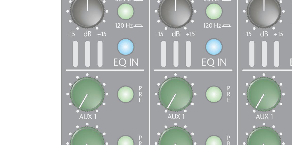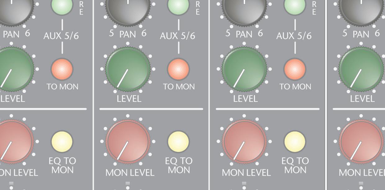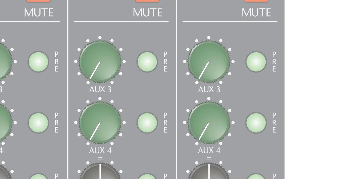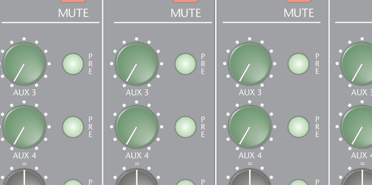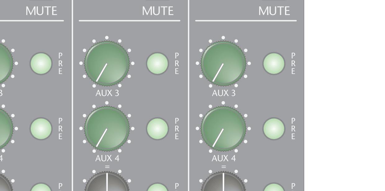 Six Auxiliary sends are provided, four mono and one stereo, each can be switched pre or post the channel fader. Aux 5/6 can also be selected between the channel and monitor path, greatly adding to the flexibility of the module.