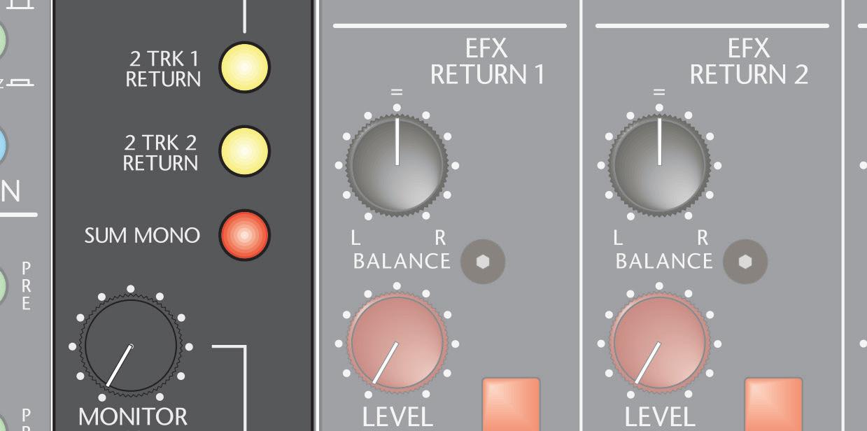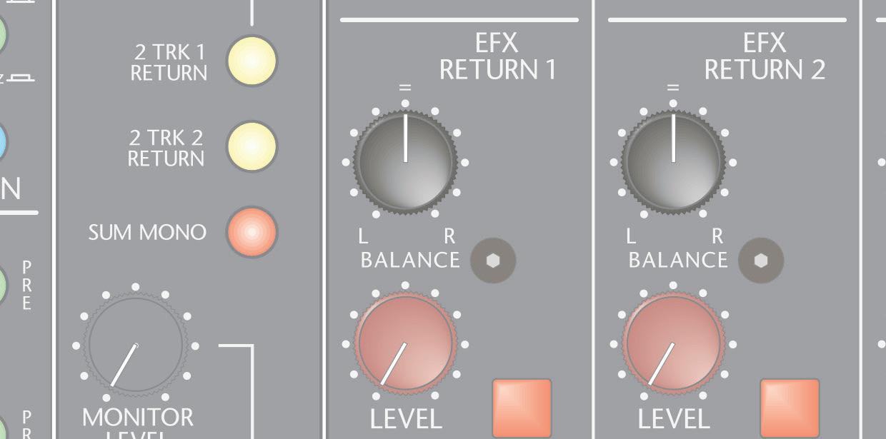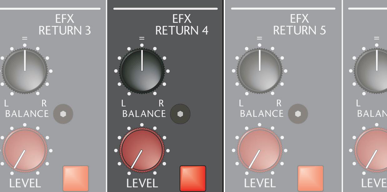 Adjusts the Effects Return signal level to the Left/Right bus.
