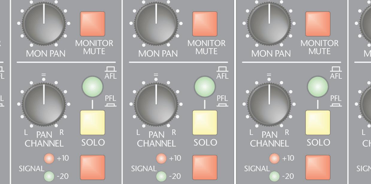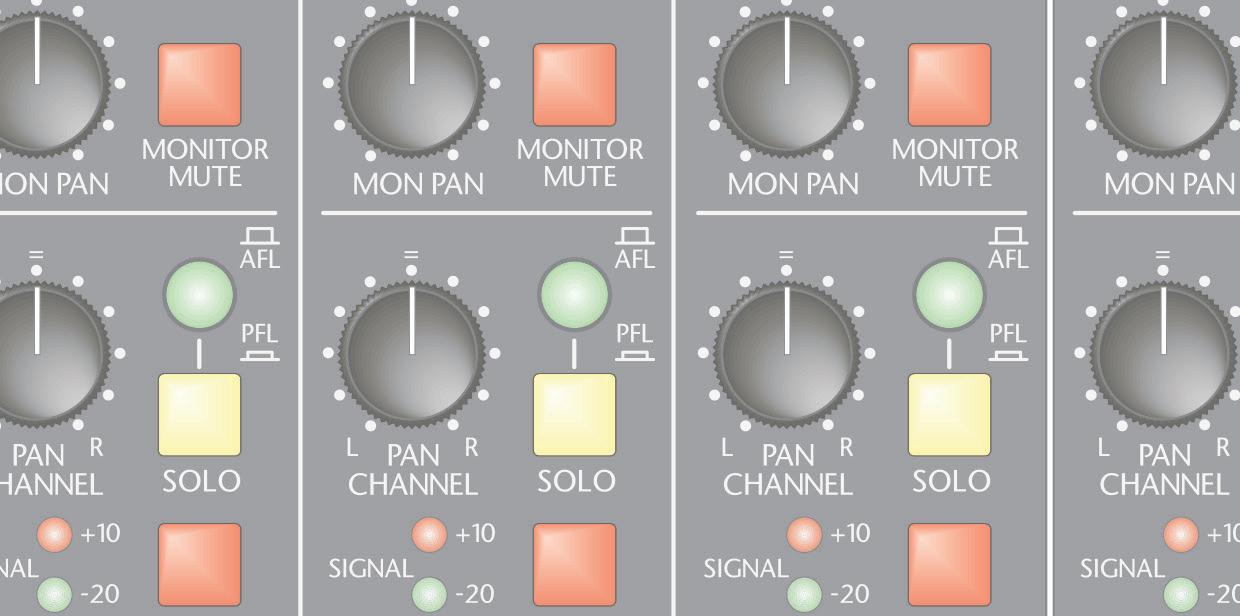 The input channel is provided with a switchable non destructive mono pre fader listen (PFL) and stereo after fader listen (AFL) SOLO system. It is possible then to hear the selected signal in isolation (or mixed with other “soloed” sources) separately in the main monitors, without effecting the main Left/Right mix.