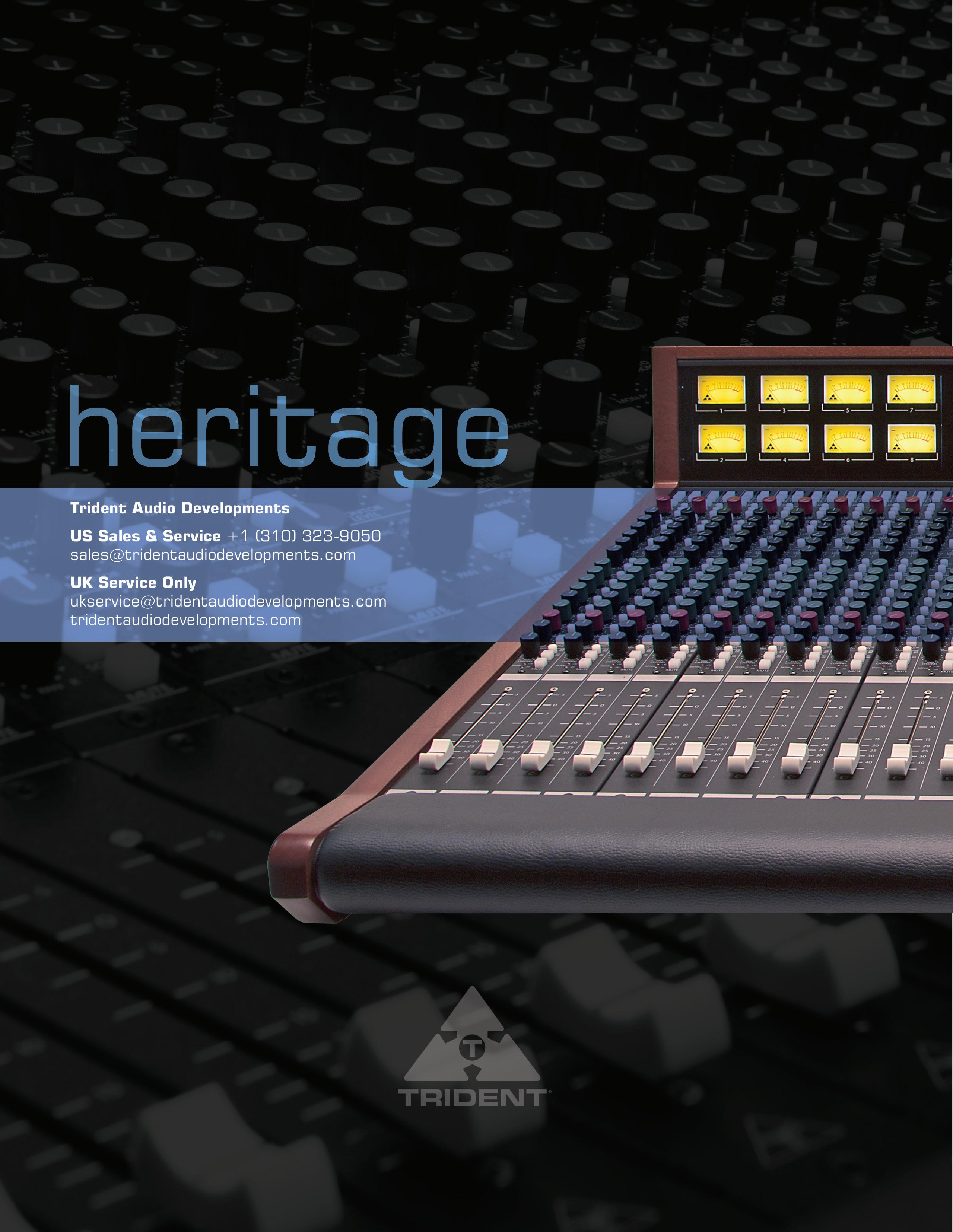 The following outlines the warranty periods for The Trident 78 Analogue console. All extended coverage is based on the timely registration of said products within the 30 days of purchase to the original purchaser from the date of Proof Of Purchase. Proof of purchase is the original Bill Of Sale or Sales Invoice from an authorized dealer.