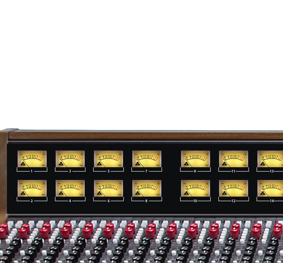 Note: the bargraph meters additionally can be assigned to monitor the console Auxiliary outputs with the AUX to MTR control allowing