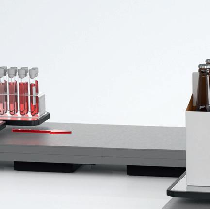The new VarioFlow belt conveyor is a stand-alone conveyor system for flexible CPG products, delicate products and diverse items. The modular belt chain has a very fine-meshed, almost closed and flat surface. This makes it suitable for the mass transport of unstable or bulk, film-packed products such as small sealed-edge bags. However, the VarioFlow belt conveyor can also be used to convey large or wide products, such as packs of paper towel or toilet paper. Inherently stable products can even protrude sideways in horizontal sections. Unlike conventional chain conveyor systems, VarioFlow modular belts are also suitable for directly transporting deep-drawn plastic trays, which usually have a delicate contact surface.