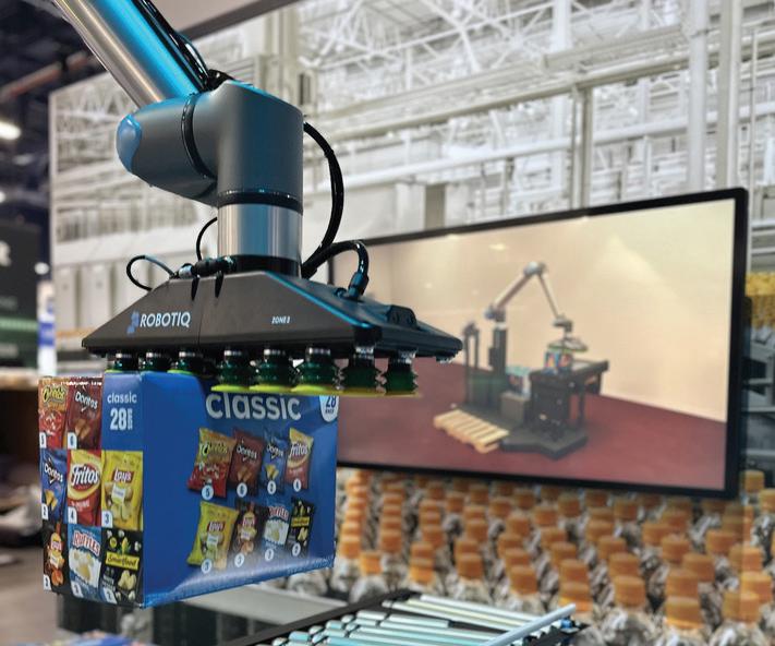 This Universal Robots, Robotiq, and Siemens collaboration integrates a UR20 robot and Robotiq PAL Ready cell with Siemens automation hardware and Digital Twin Composer software to optimize palletizing and provide real-time operational insights.