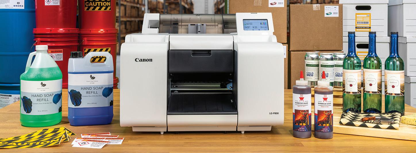 Canon’s LG-P800, which produces high-resolution labels up to 8 inches wide with pigment-based inks that are designed for durability, can adapt to a wide range of tasks such as product, inventory, shipping, and certain food packaging labeling. Canon pwgo.to/9070