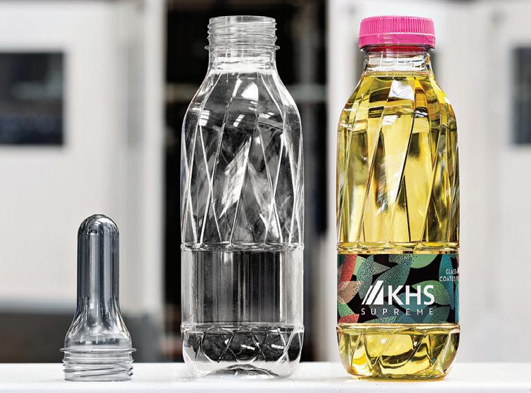 The KHS SUPREME uses Plasmax barrier technology to provide glasslike protection for oxygen-sensitive beverages, extending shelf life while maintaining recyclability and supporting high-speed production up to 60,000 bottles per hour.