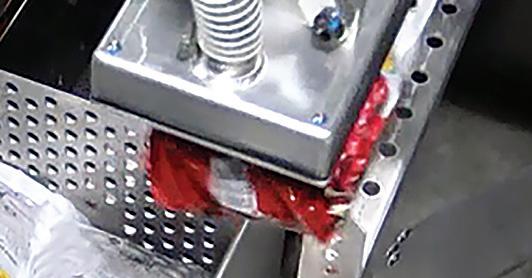 might be caused by the oil-based products inside the containers. The problem was that once the bottles were out in the rough-and-tumble world of metal fabrication, some degradation was almost inevitable. “That meant directions for use printed on the bottle could become illegible,” says Gaines. “So now we run those bottles through the shrink sleever, too, and the sleeve label does a much better job of resisting the kind of degradation we were seeing with the coated