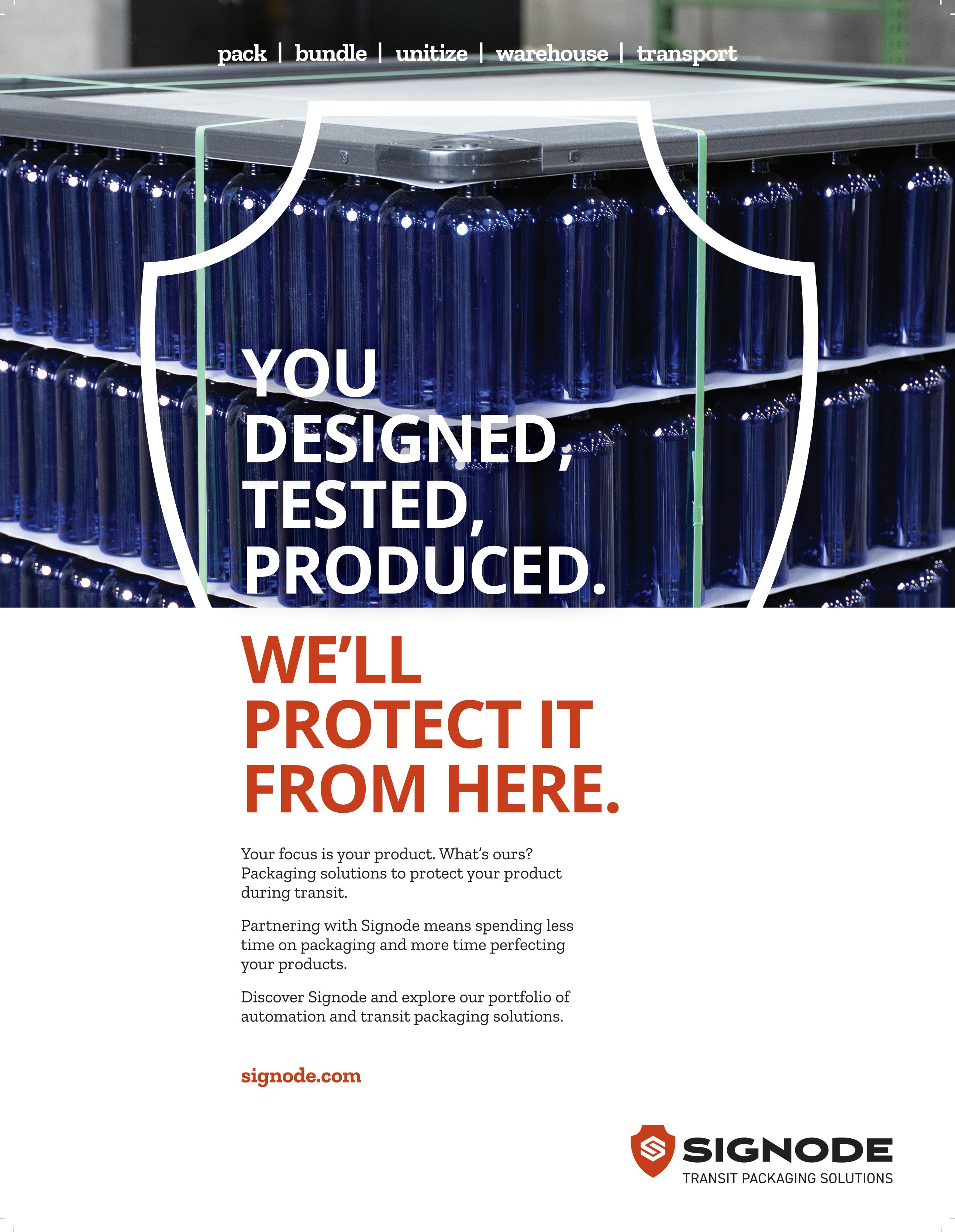Signode’s solutions combine conveying, robotic palletizing, strapping, and automated storage integration to improve throughput, load stability, and plant-wide predictability for producers of aluminum cans, bottles, jars, and other rigid formats.