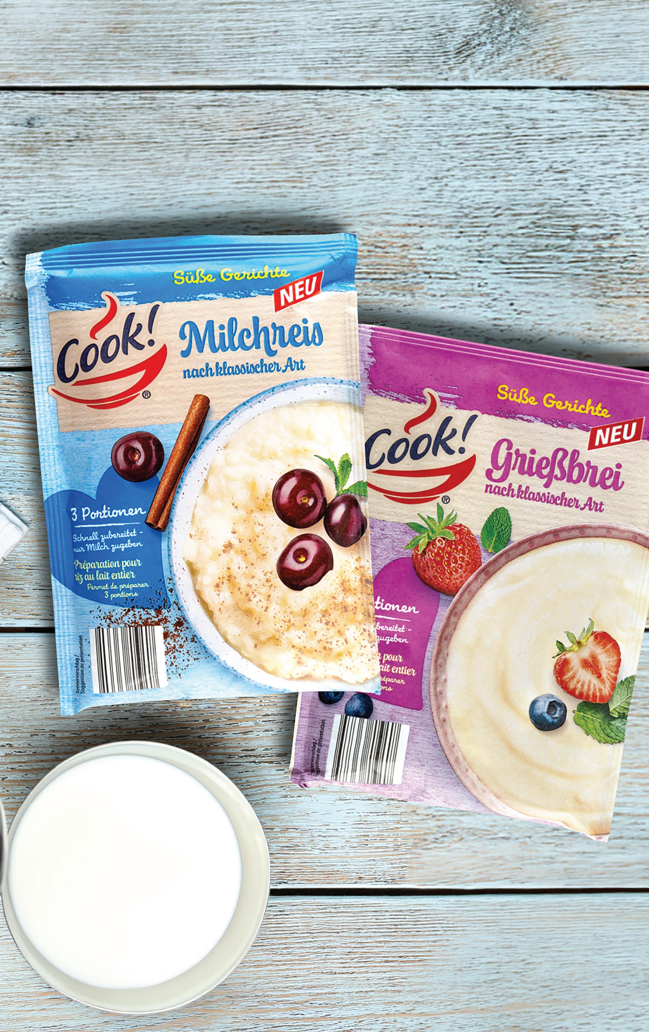 European grocery chain NORMA moves its private-label cream of wheat and rice pudding into recyclable paper pouches that provide barrier through a water-based dispersion coating.