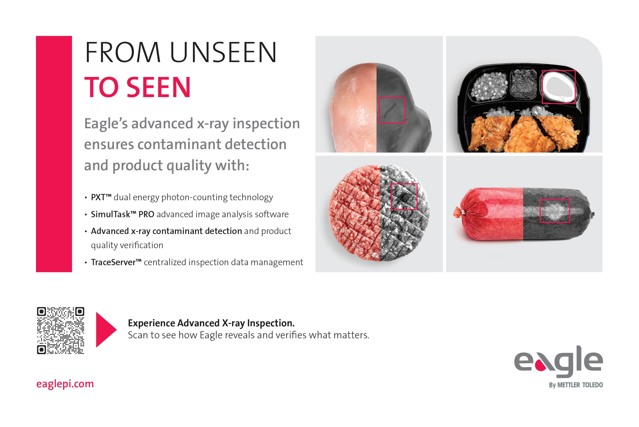Eagle Product Inspection’s Pack 430 PRO with PXT helps food processors maintain stable, high-speed detection, reduce false rejects, and support FSMA- and USDAaligned inspection across increasingly complex packaging formats.