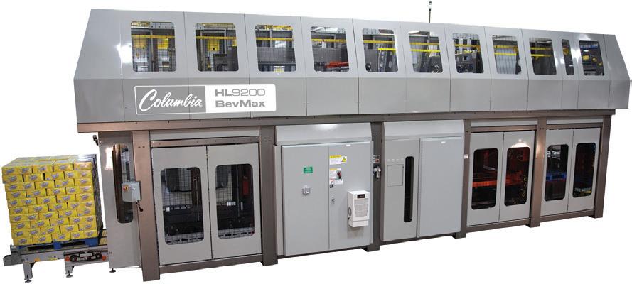 Columbia Machine’s high-speed HL9200 BevMax Palletizer features advanced servo-controlled automation, intelligent pattern management, and Category 3 safety compliance to deliver advanced throughput, exibility, and load integrity.