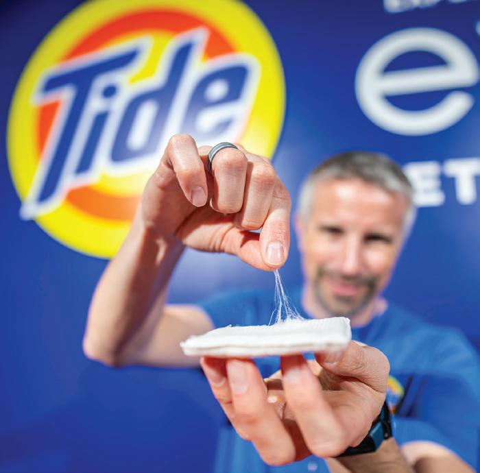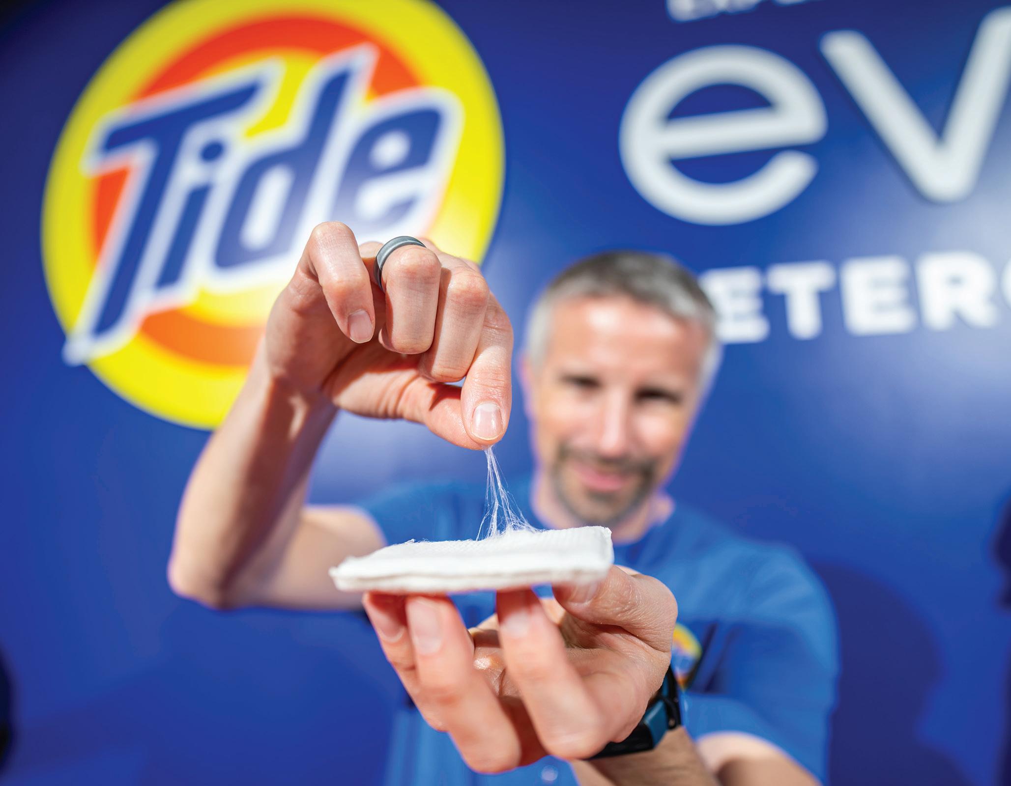“We wanted to create a detergent that effortlessly fits into busy lives, prioritizes sustainability by eliminating water and fillers, and, most importantly, adds a touch of enjoyment to the laundry process,” says Ammie Walter, senior brand director of P&G’s Tide evo.