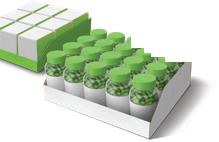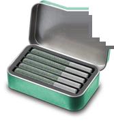 Tiles are stacked snugly into paperboard trays that nestle into rounded-corner, hinged-lid cartons featuring zipper tear strip opening and click tab reclosure. The paperboard cartons are made in 16-, 22-, 30-, and 44-tile counts.