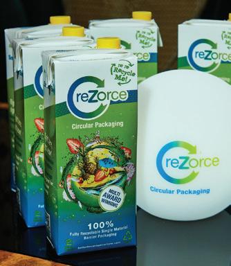Expected to be on shelves by Q3 is a gamechanging new aseptic carton format. While brands swap plastic for paper, reZorce ips the script with circular, mono-material HDPE/ rHDPE for paper. Finishing validation, CM/CP Refresco will be rst to market.