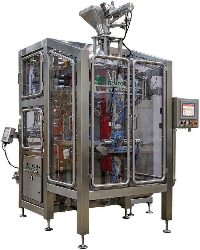 Fres-co System’s FSU800RTC continuous motion vf/f/s machine is speci cally designed for multi-phase lling of liquids and solids, making it an ideal option for food service and food and beverage sectors. Fres-co System pwgo.to/8186
