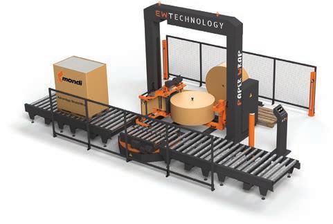 Mondi and EW Technology launch a paper palletwrapping machine that can be fully automated for wrapping up to 60 pallets/hr or semi-automated for wrapping 10 to 15 pallets/hr.