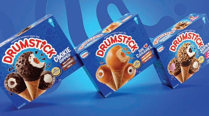 The Nestlé Drumstick brand of ice cream sundaes has been a household name for nearly 100 years, since 1928. But more recently, competitors—including many private labels— have been encroaching on the iconic brand’s turf, imitating the lineup and visual brand cues, and creating a homogenous sea of blue on the shelf, according to the company.