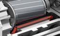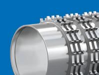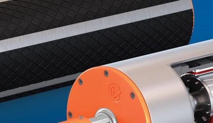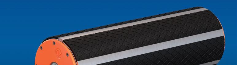 The VDG patented IronGrip™ lagging, offered for VDG Drum Motors, enhances the durability and lifespan of the conveyor belt and the lagging. It consists of steel bars welded symmetrically on the drum with hot-bond vulcanized lagging inserts between the bars. IronGrip™ lagging eliminates uneven belt wear, improves belt tracking, increases belt traction by 40%, and has a 4-5 times longer service life compared to standard lagging.