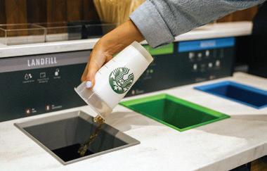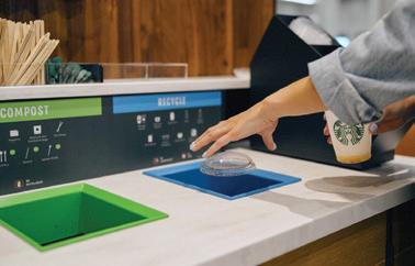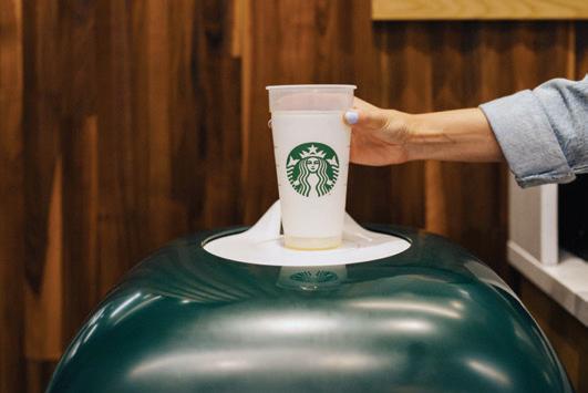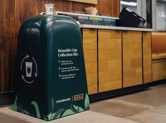 Starbucks is partnering with TURN Systems in a reusable polypropylene cup pilot. A bin that scans the cup bottoms, accepts them to be washed, and returns them to the rotation. Consumers win points and rewards for their behavior.