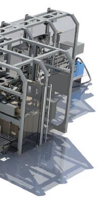 Ergonomic Blank Load System Conveyor fed case blank loading system accepts flat stacks of blanks for easy loading.