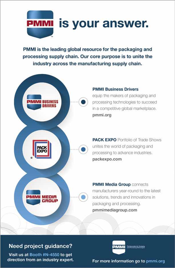 SHOW DAILY OCTOBER 26, 2022 92 PACK EXPO International 2022 Trusted, actionable, expert. The PMMI Business Intelligence library offers complimentary access to White Papers and Executive Summaries of PMMI’s economic and industry reports such as: • Robots and Cobots An Automated Future • Achieving Packaging Sustainability • State of the Industry - US Packaging Machinery Powerful Research to Move Your Business Forward Visit pmmi.org/research for access to our extensive library.