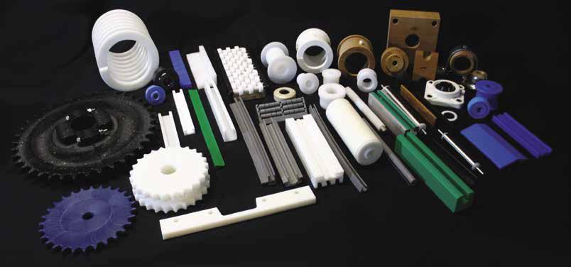 Conveyor components and fric tion-reducing parts portfolio from POBCO (Booth N-6038) includes roller chain guides, bear ings, guide rails, rollers, sprockets, wear profiles, belt guides and custom-machined parts. Materials include a variety of FDA-compliant plastics, high-temperature-resistant options, lube-filled hardwood and metals. SD
