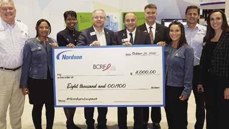 Adhesive Dispensing Systems, a division of Nordson (Booth N-2030) donated $8,000 to the Breast Cancer Re search Foundation, as part of its Nordson Impact outreach program. PMMI, The Association for Packaging and Processing Technologies (Booth N-4550), contributed an additional $5,000.