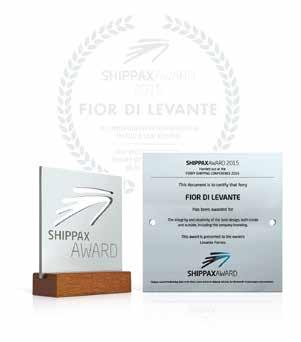 But these were not the first awards for our company. Just a few months after its debut, our pioneering vessel won the prestigious Shippax Award as the world’s most beautiful ferry for 2015 at the Ferry Shipping Conference in Stockholm. More specifically, the Fior di Levante was honoured for its exterior and interior design, which reflects a high level of service and passenger comfort, as well as the unique brand identity of its owner. Subsequently, the Smyrna di Levante won the global Shippax Retrofit Award 2023 as the best retrofit of the year at the Shippax Awards in Barcelona.